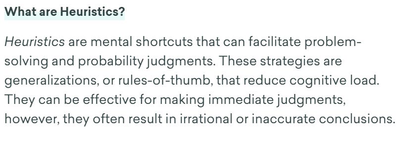 This gap leaves the general audience with sources like Decision Lab, but there’s several inherent flaws in the way such sources discuss heuristics: